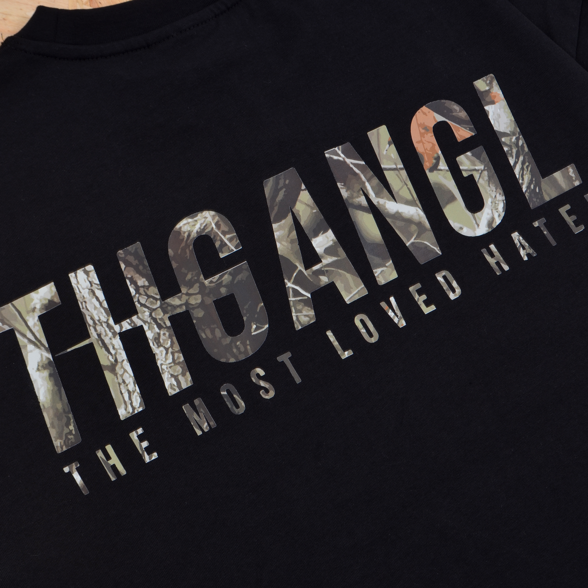 Oversized Tee in mid-weight 240 GSM premium cotton. Brand Carrier THGANGL branding to the front chest and back in RealTree inspired Camo