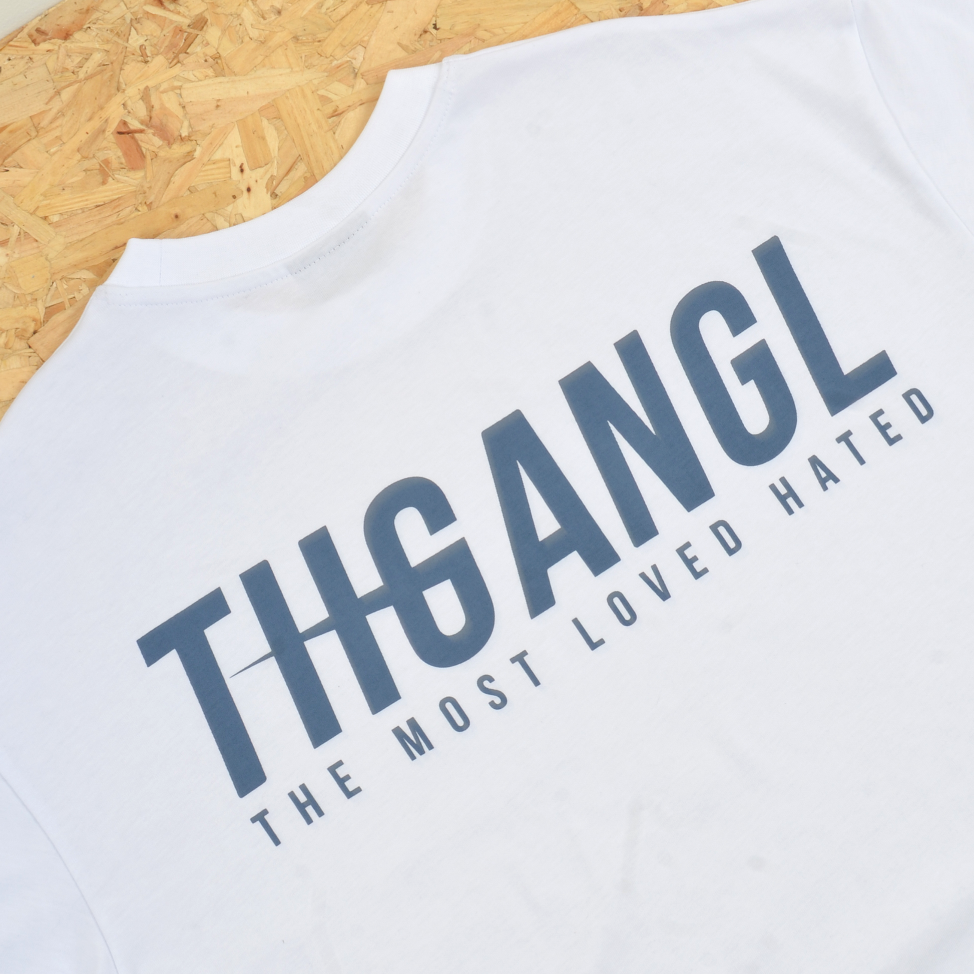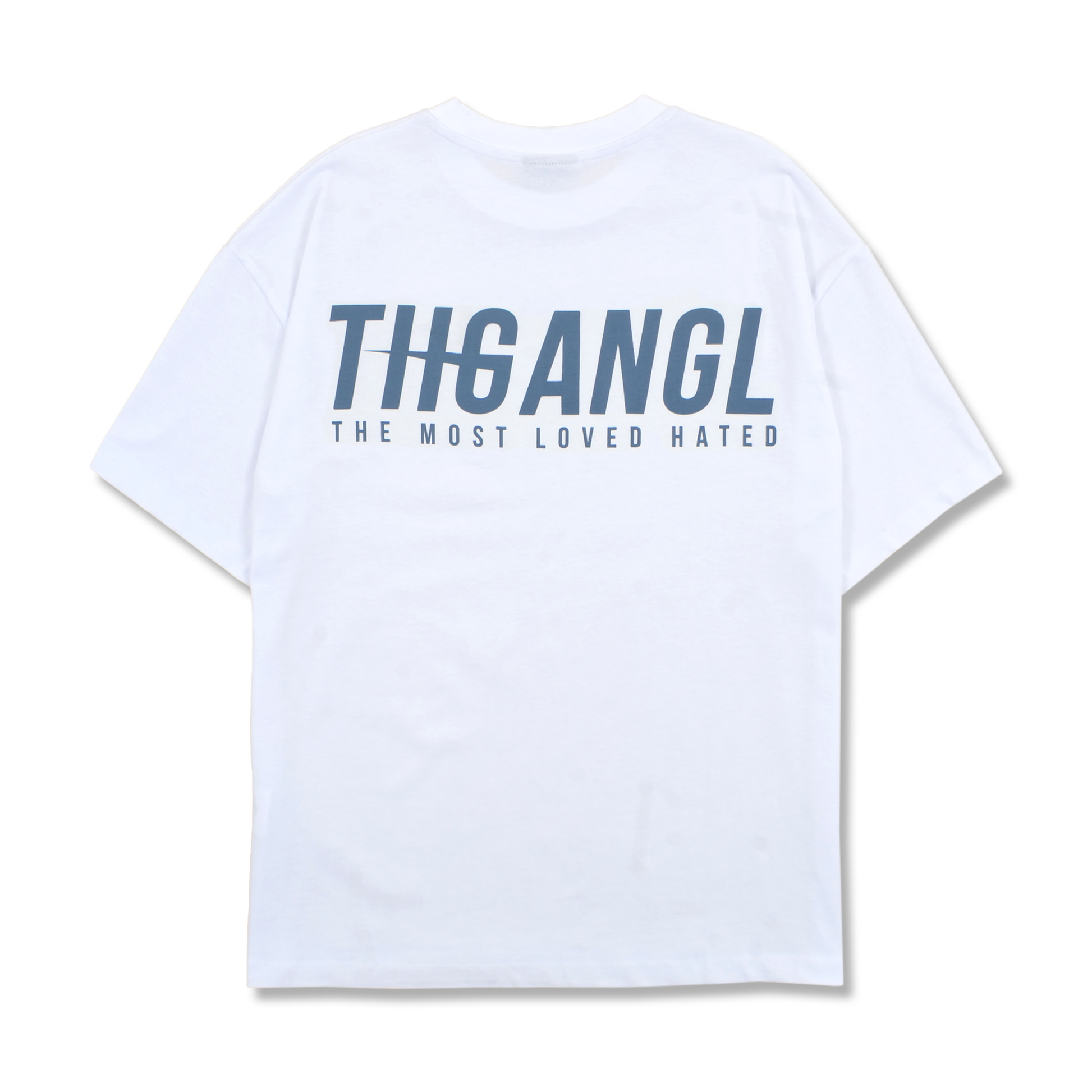 Oversized Tee in mid-weight 240 GSM premium cotton. Brand Carrier THGANGL branding to the front chest and back in Future Dusk Blue